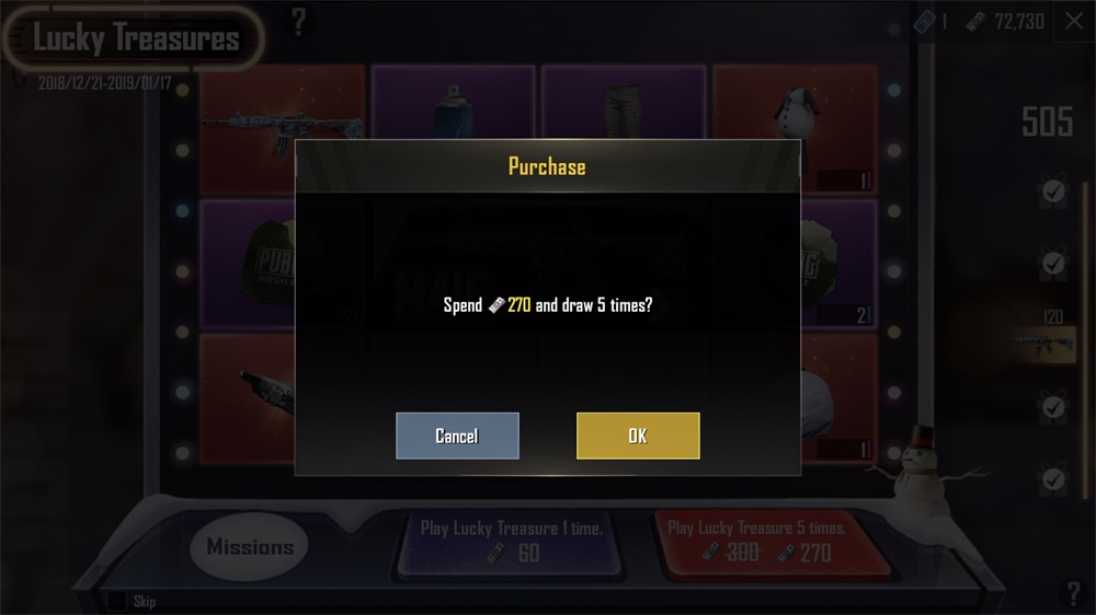 أكمل المهمات اليومية للحصول على قسائم الكنوز أو أنفق العملات غير المعروفة للعب كنز الحظ لاغتنام فرصة الحصول على مواد ترقية شكل السلاح الناري أو شكل Glacier - M416 نفسه القابل للترقية أو حتى ملابس العطلات!